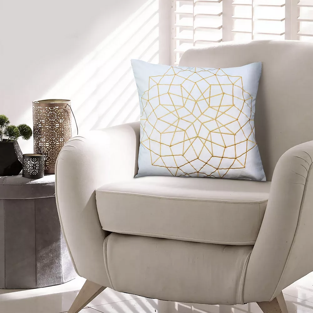 Bring home warmth and comfort for the evening after long, stressful days with this gorgeous accent throw pillow. Wrapped in plush, soft cotton with polyester fiber filling, the artistic air of this pillow comes from a perfectly stitched abstract embroidery depicting a mesmerizing, web like pattern in stunning gold. This piece is perfect when placed atop an accent chair, complimenting a sophisticated interior beautifully. Check out our Hugo collection for more options.