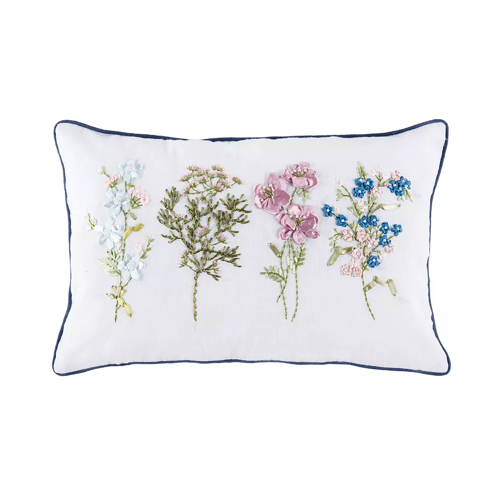 Add a touch of charm to your décor with this floral ribbon art throw pillow.
