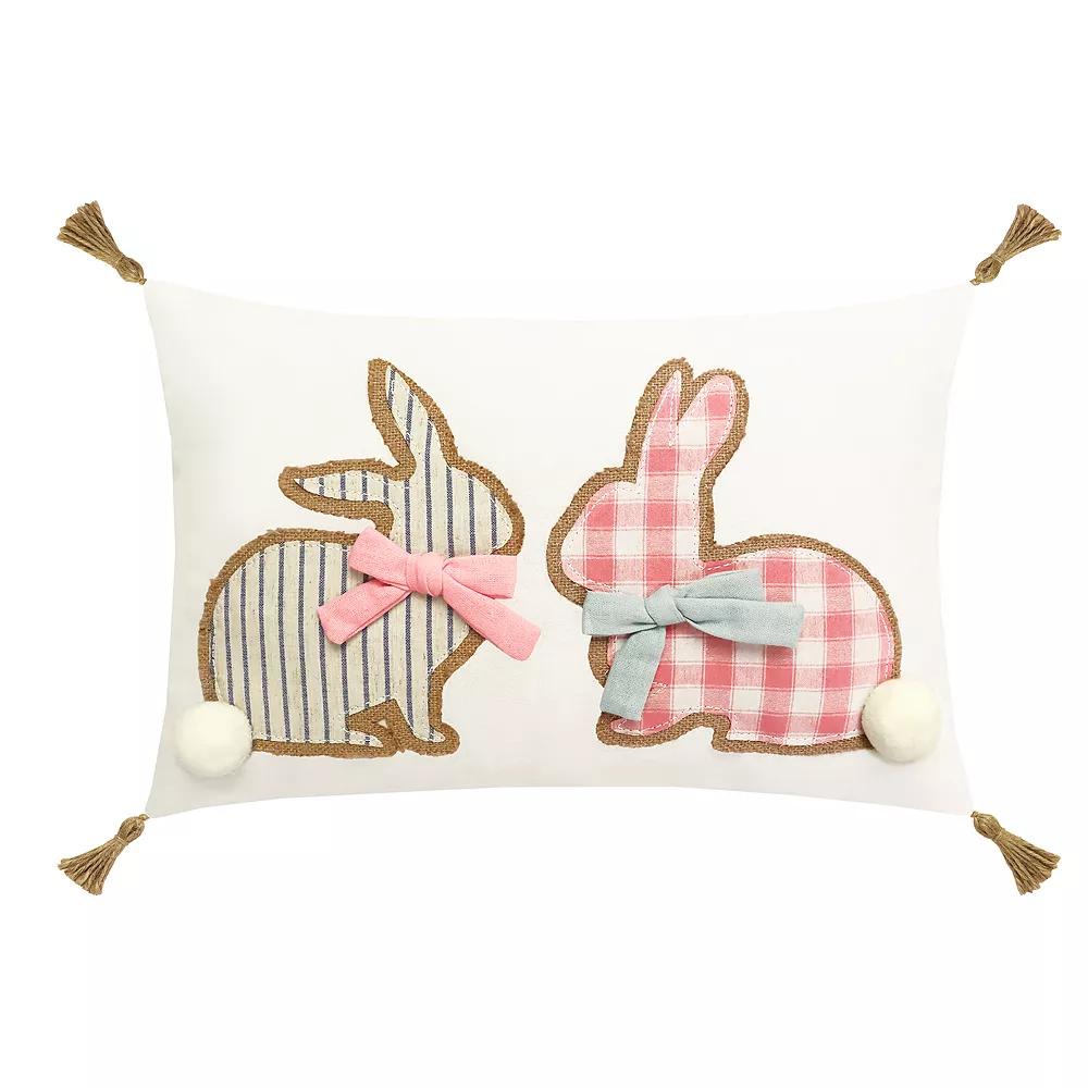 Add a fresh look to your space with this stylish Celebrate Together Easter Ivory Gingham Bunny Pillow .