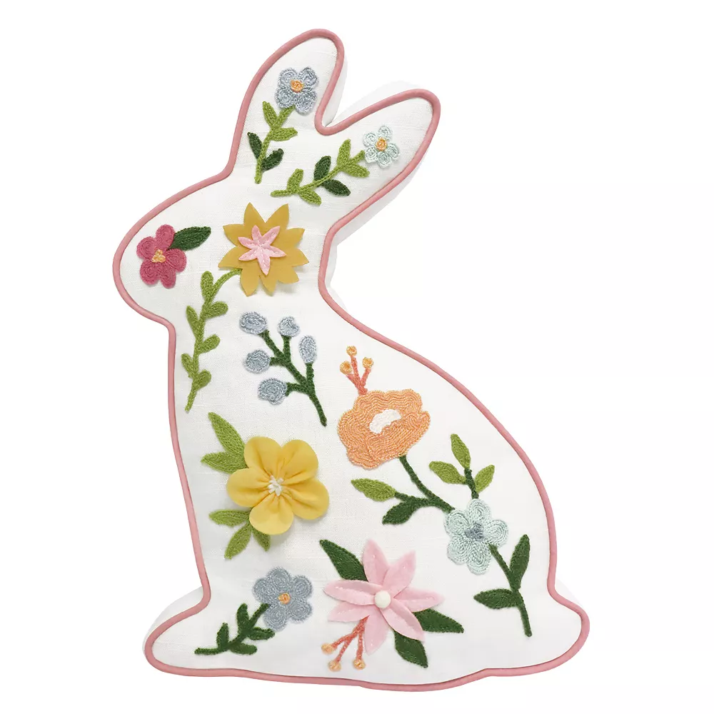 Add a fresh look to your space with this stylish Celebrate Together Easter Ivory Shaped Floral Bunny Pillow .
