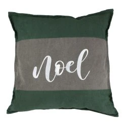 Add some comfort and style with this suede throw pillow. Green suede pillow features a brown burlap style banner with the word Noel. It creates a holiday elegance that complements any style while the thick cushion makes these throw pillows cold-weather favorites that stay stylish year after year. Allow your family and friends to enjoy a cozy night in with this practical and beautiful throw pillow. Features: Color(s): green and brown. Features the word noel in white letters. The pillow is square in shape. There is a zipper closure. Backing is solid green. For indoor use only. Dimensions: 18 long x 18 wide. Material(s): suede