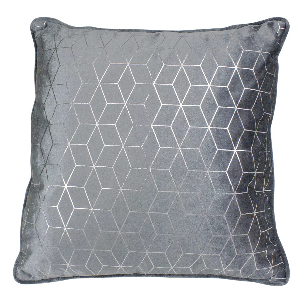 Add some comfort and style with this velvet throw pillow. These velvet pillows are functional as they are beautiful. With a steel gray and silver geometric pattern they create a subtle elegance that complements any style while the thick cushion makes these throw pillows cold-weather favorites that stay stylish year after year. Allow your family and friends to enjoy a cozy night in with this practical and beautiful throw pillow. Features: Color(s): gray and silver. Features a geometric design on the front. The pillow is square in shape. There is a zipper closure. Reverse side is a solid blue with no pattern. For indoor use only. Dimensions: 19 in diameter. Material(s): velvet