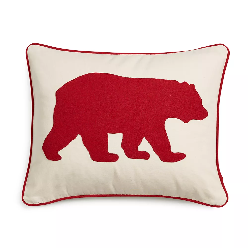 Add a cabin essence to your home with this Eddie Bauer Bear Applique Twill throw pillow.