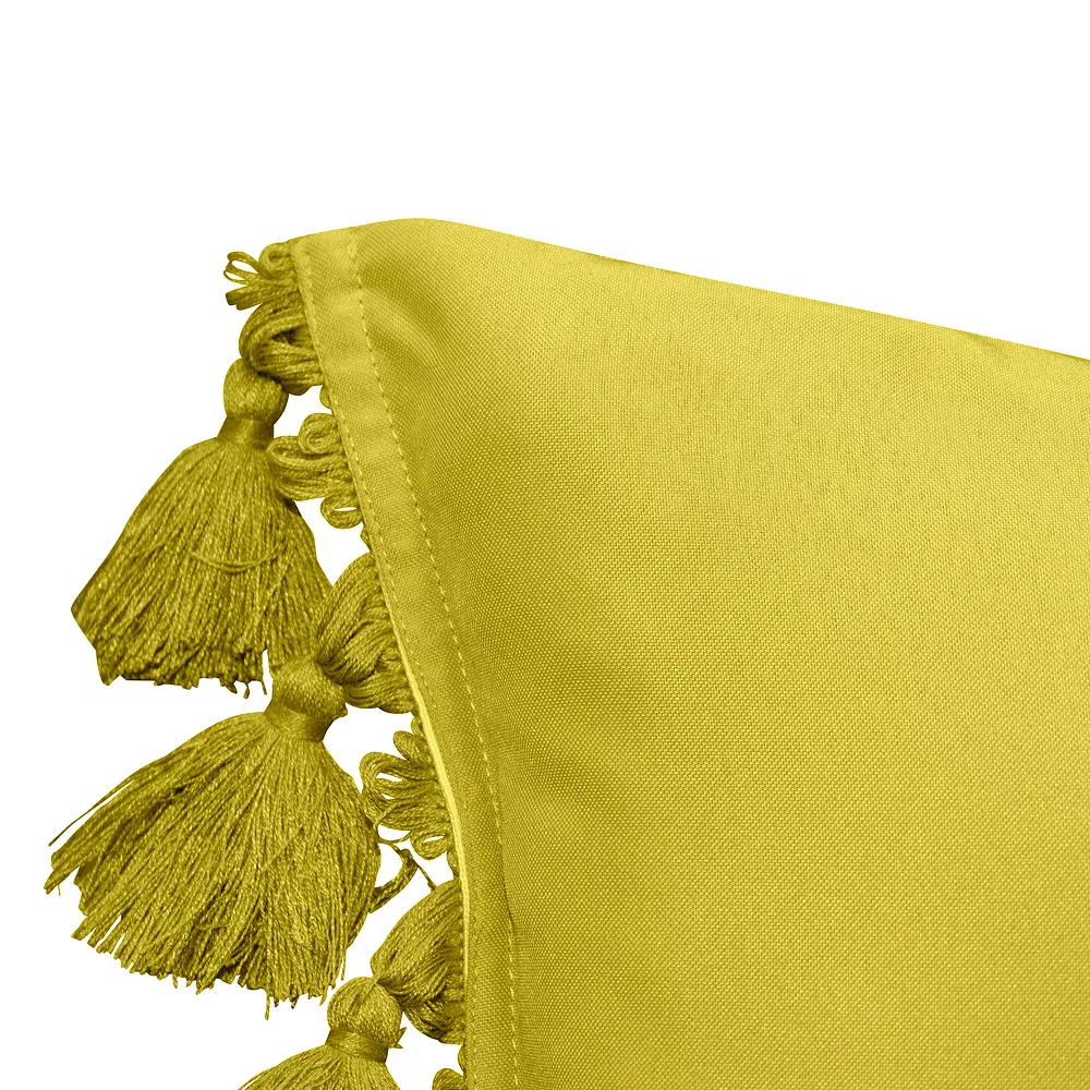 Easily elevate the look and feel of any living space with this exceptional Edie@Home Indoor Outdoor Colorblock Tassel Fringe Throw Pillow.