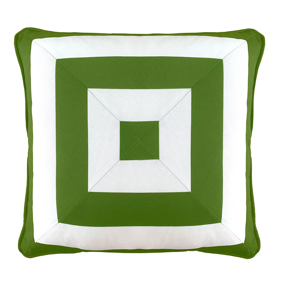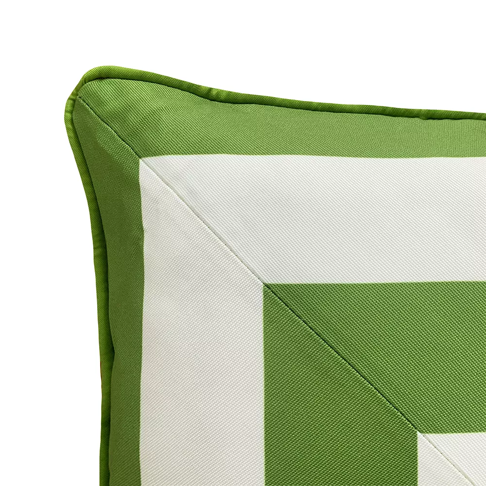 Easily elevate the look and feel of any living space with this exceptional Edie@Home Indoor Outdoor Reversible Raffia Mitered Stripe Throw Pillow.