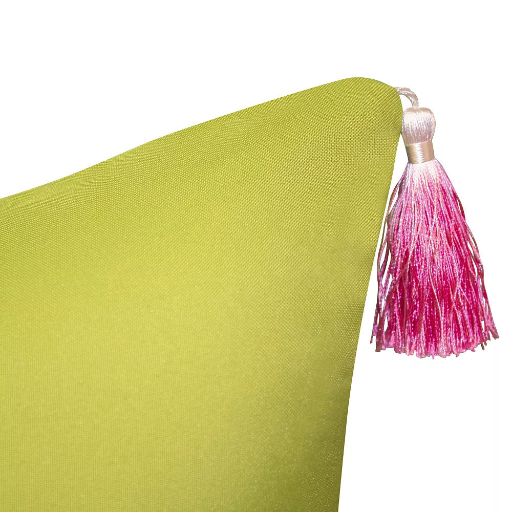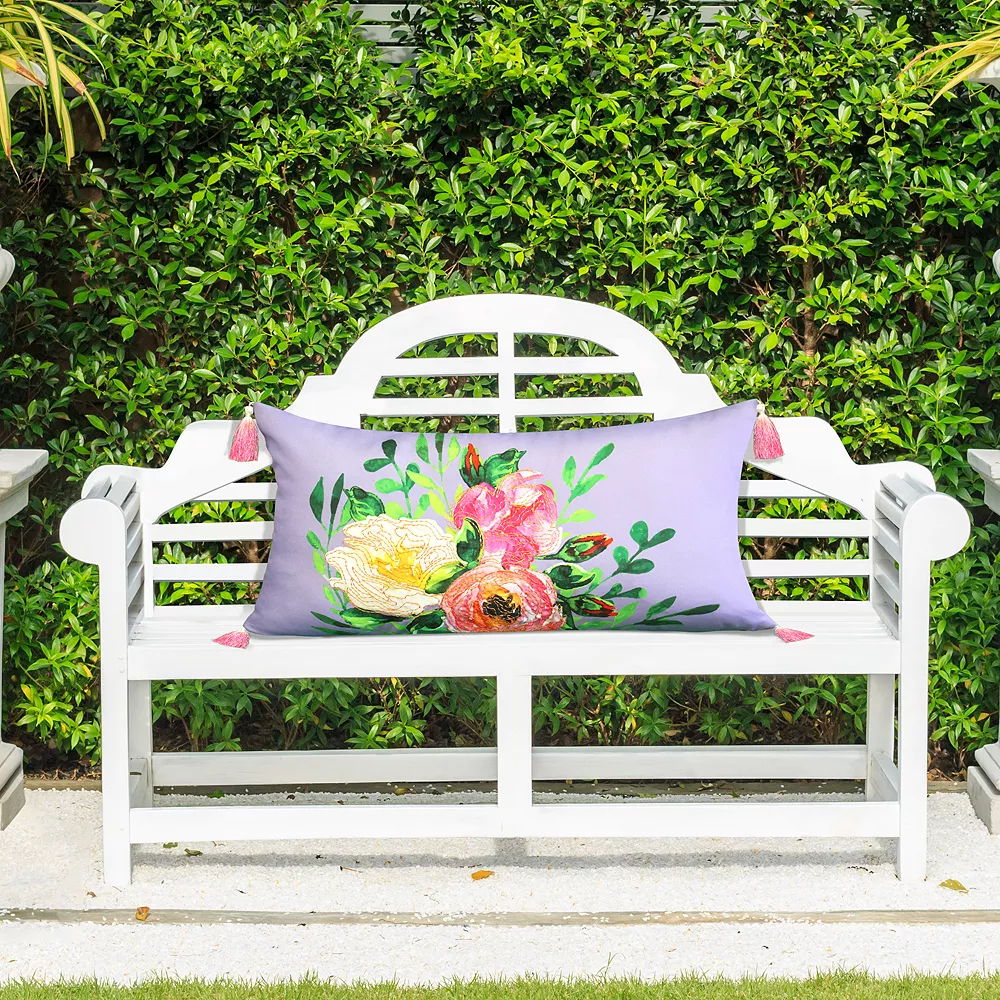 Easily elevate the look and feel of any living space with this exceptional Edie@Home Indoor Outdoor Rose Print with Embroidery and Ombre Tassels Throw Pillow.