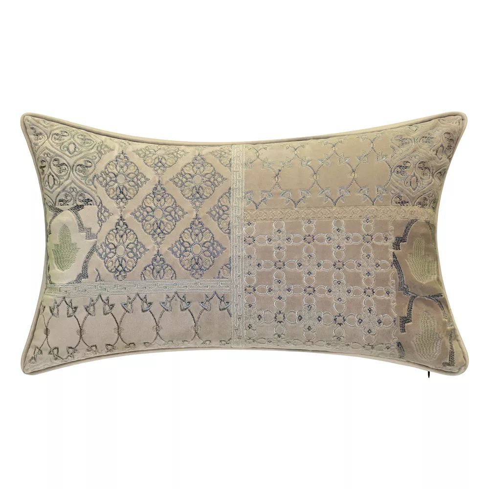You’ll enjoy the look and feel of this Edie@Home Velvet Patchwork Embroidered Lumbar Throw Pillow.