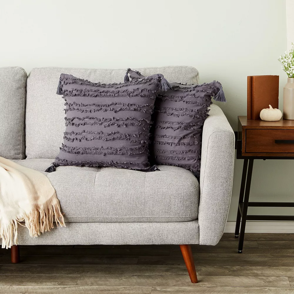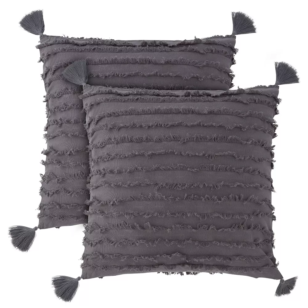 - Grey Throw Pillow Covers: Refresh your modern home decor with this set of decorative throw pillow covers; the ruffled cover with tassels is a great addition to any bedroom, couch, sofa, chair, patio