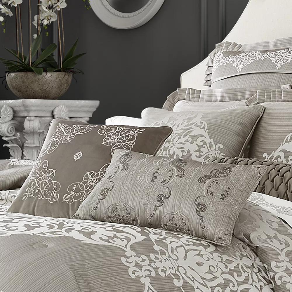 Showcase your inner designer by styling your bedroom with this trendy Five Queens Court Camilla 18″ Square Decorative Throw Pillow.