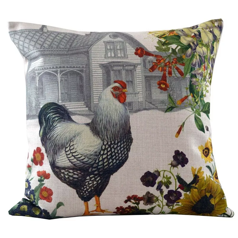 . Product Features: Color(s): red green black and white. Black and white hen throw pillow. Provides exceptional comfort and modern style. Design is on one side only; reverse is solid white. Carefully crafted with a hidden zipper for ease of cleaning. Recommended for indoor use only. Care instructions: spot clean only. Dimensions: 18H x 18W x 6D. Material(s): polyester/linen look