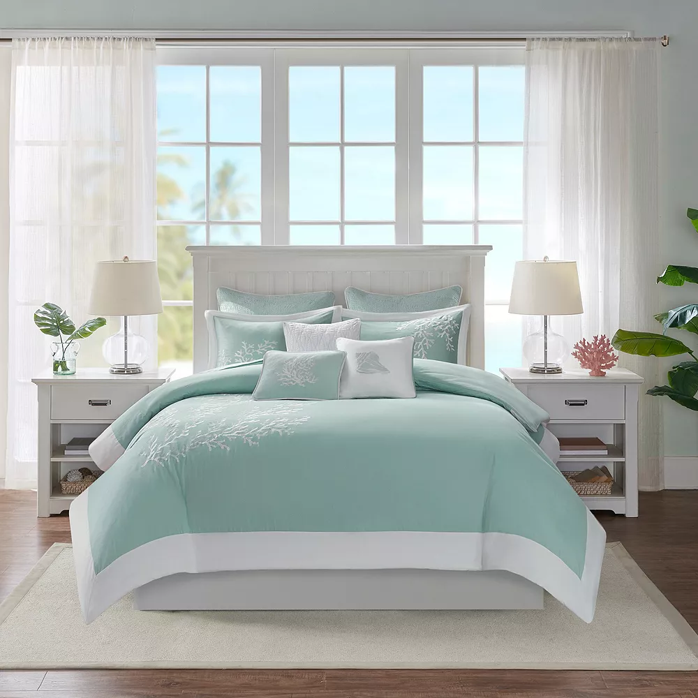 Bring a bit of seaside inspiration into your home with this beautiful Harbor House Coastline embroidered throw pillow.
