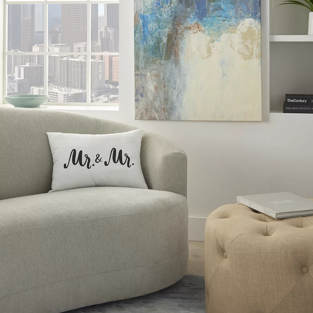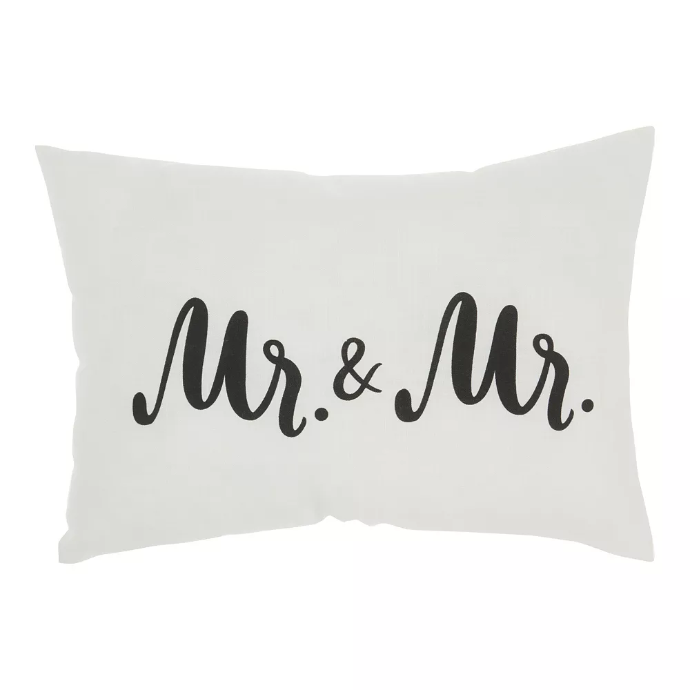 Celebrate the happy couple with this Kathy Ireland Home “Mr & Mr” White Oblong throw pillow.
