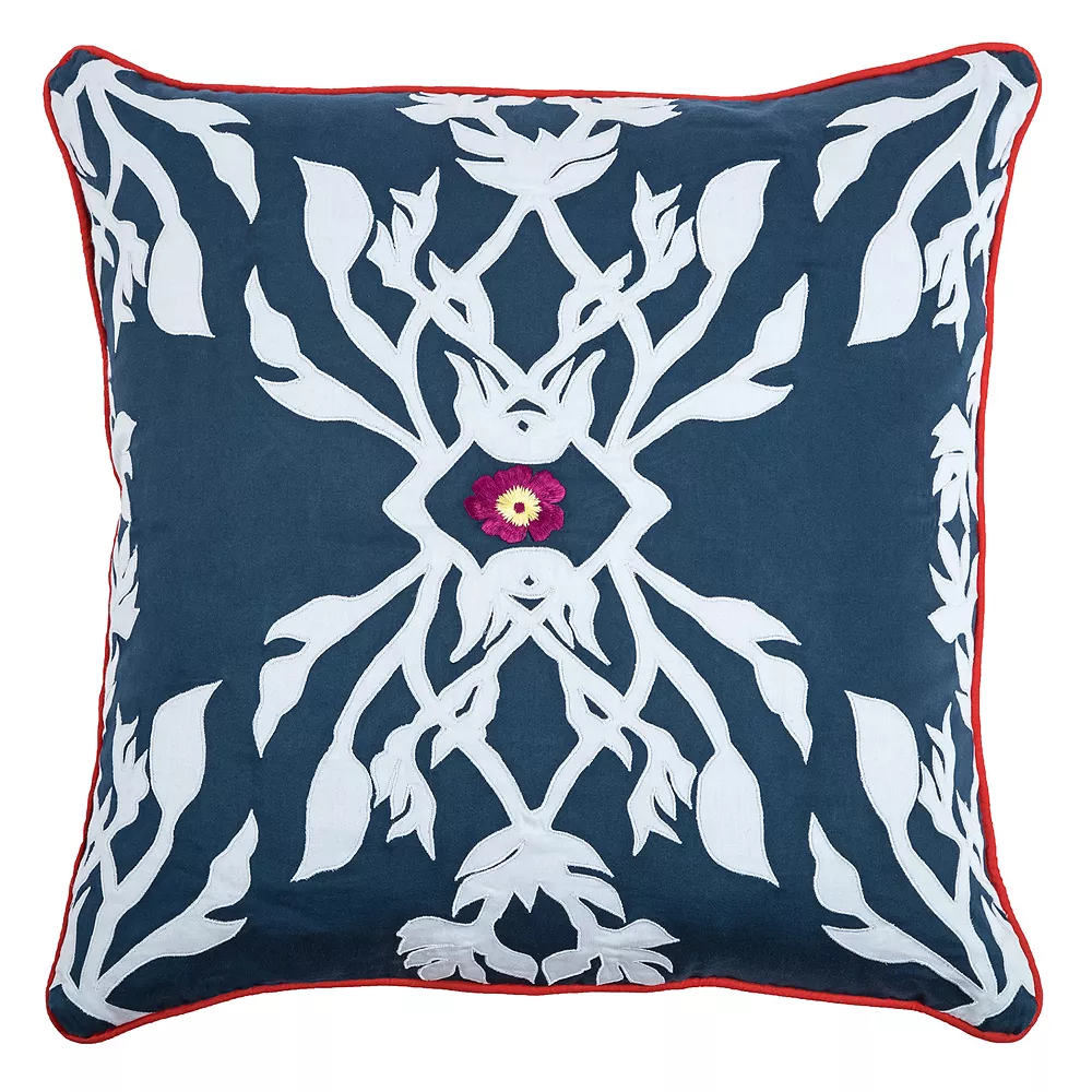 Bring beauty into any room with this Laura Fair By Rizzy Home Botanical Applique Embroidered throw pillow. In navy.