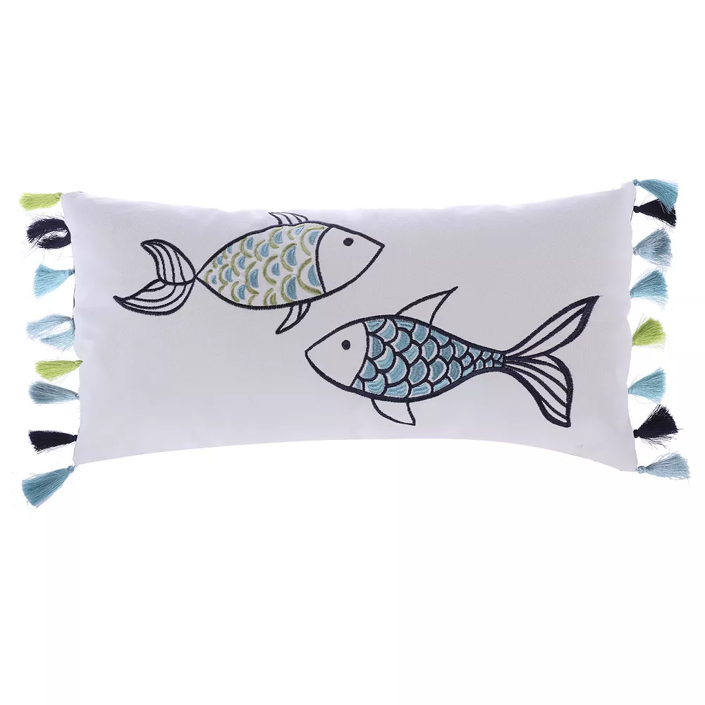 Capture coastal style with this Levtex Home Fish oblong throw pillow. In white.