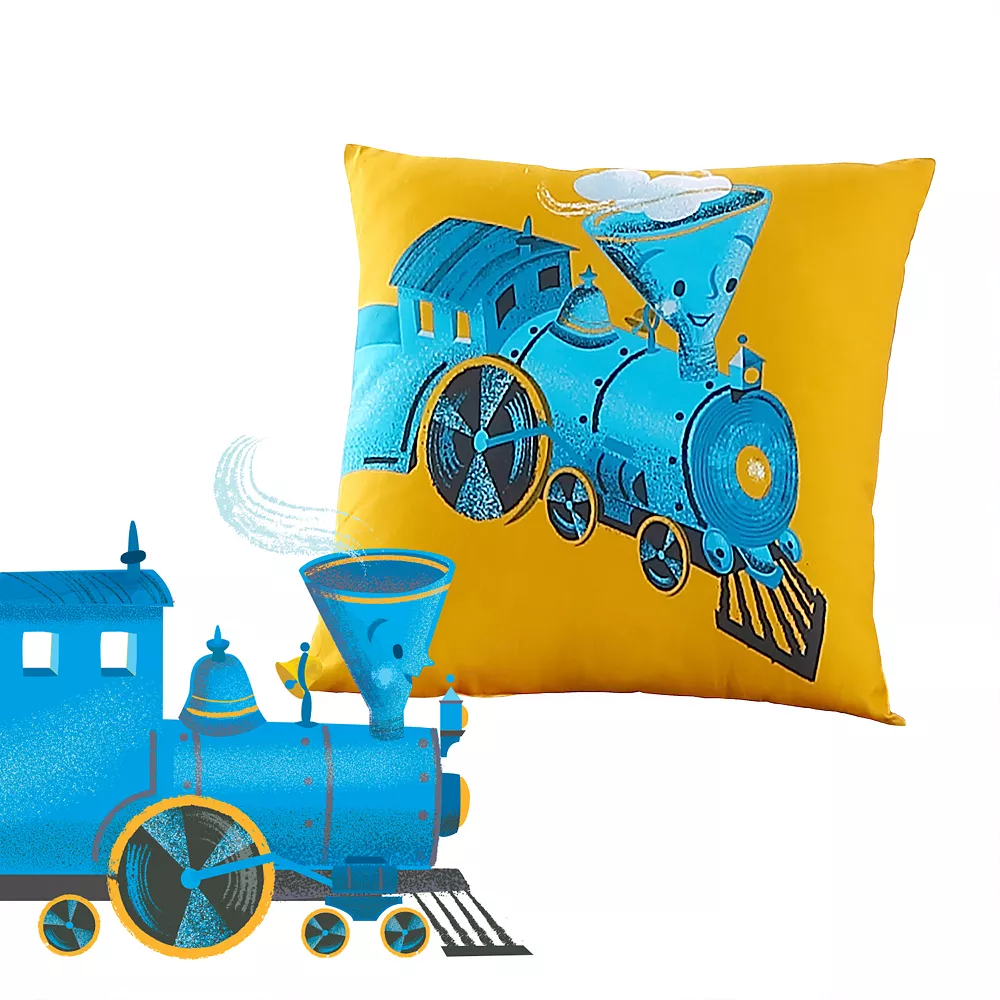 Add a fun and cozy look to your bed with this Right On Track throw pillow.