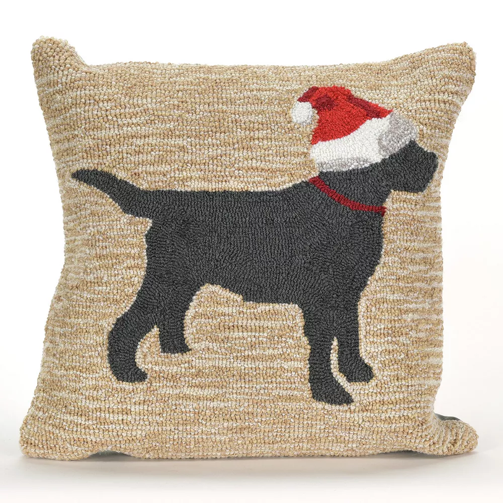 This Liora Manne Frontporch Christmas Dog indoor and outdoor throw pillow is a fun addition to your holiday decor. In natural.