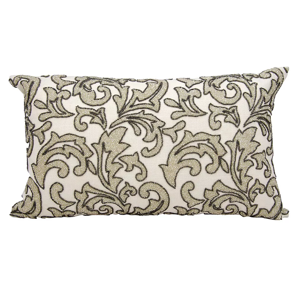 This Mina Victory Luminescence Leaves Beaded throw pillow makes your decor shine. In silver.