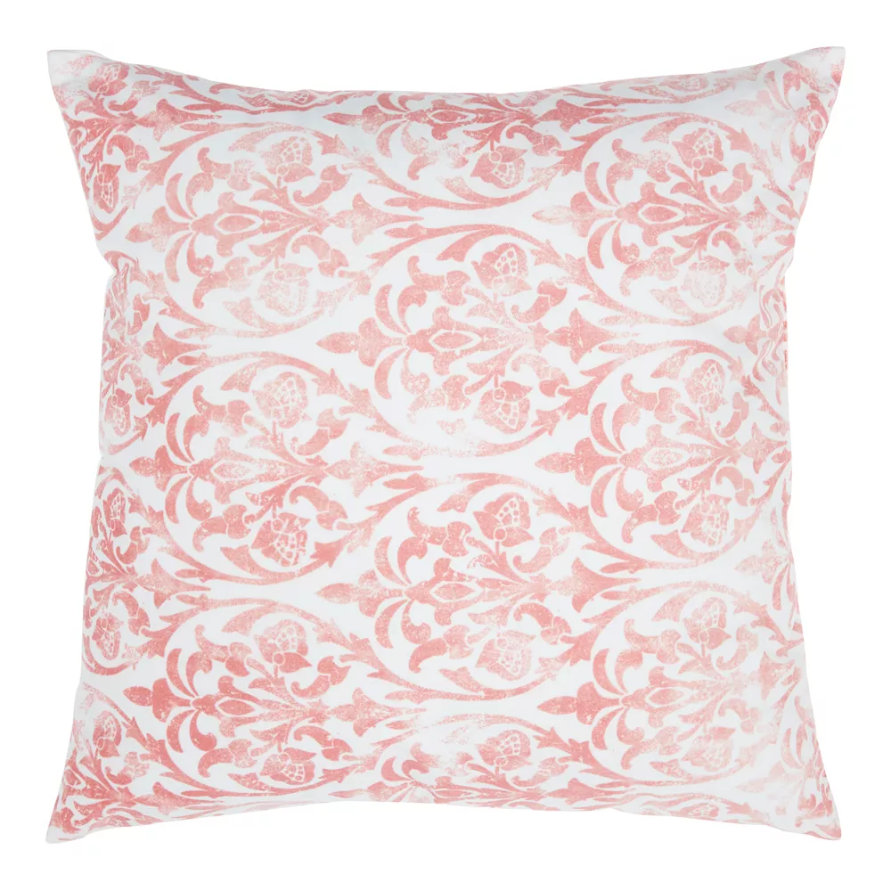 This Mina Victory throw pillow features a faded damask pattern in a variety of colors.