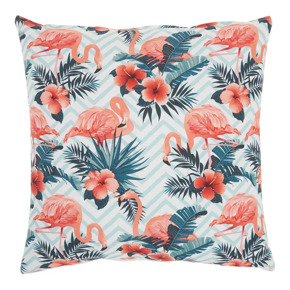 Lend a unique look to any living area with this Mina Victory Life Styles Tropical Flamingos Multicolor throw pillow.