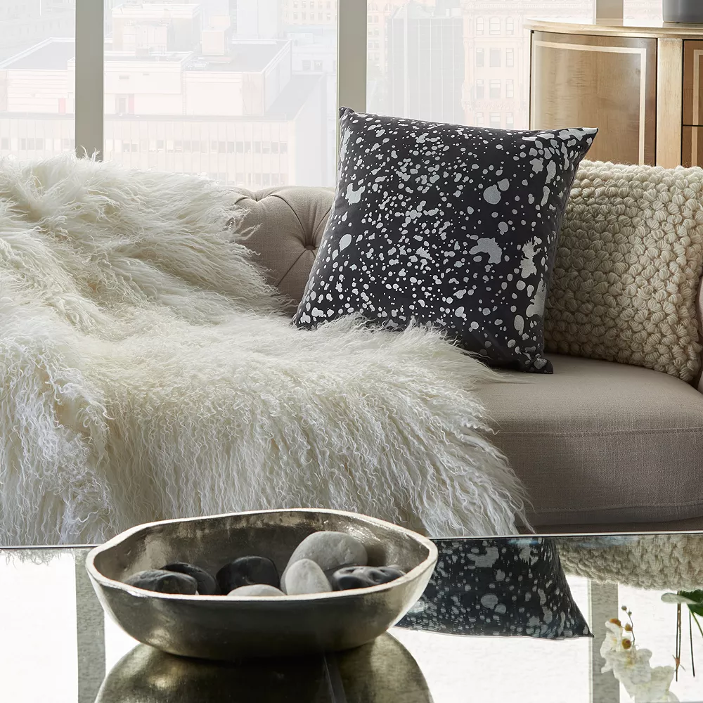 This Mina Victory throw pillow has a luminescent, metallic splash pattern that will make a statement in your living space.