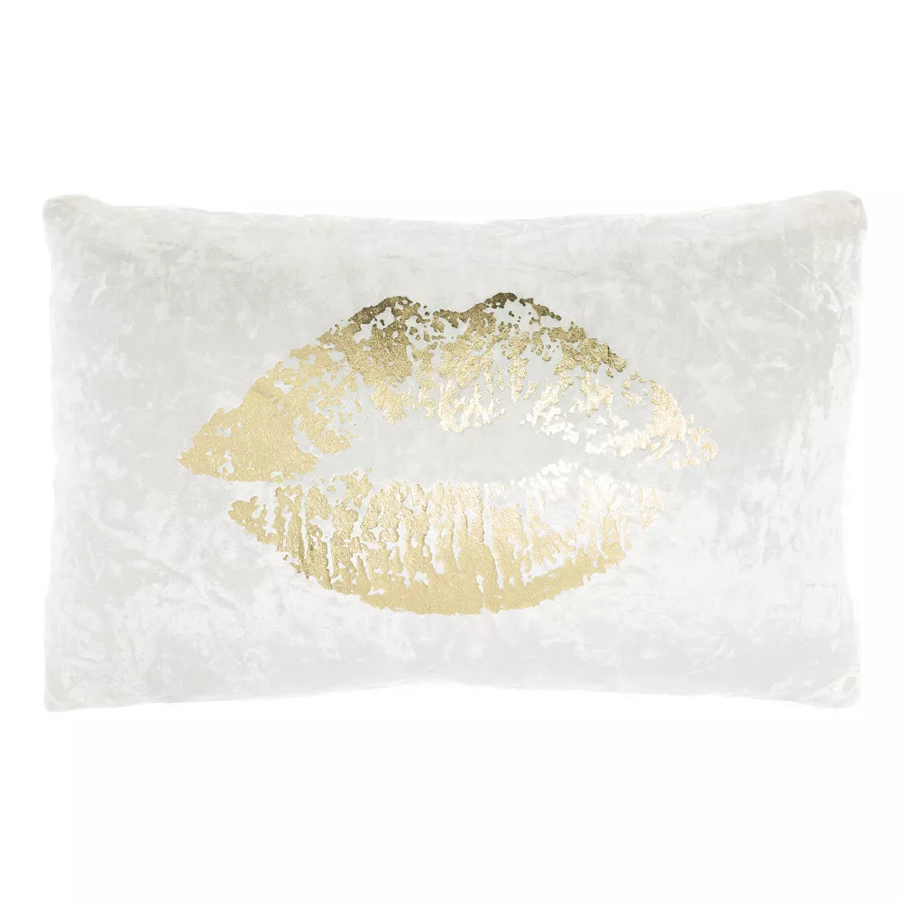 Add a girly touch with this Mina Victory nourison luminescent metallic lips pillow.