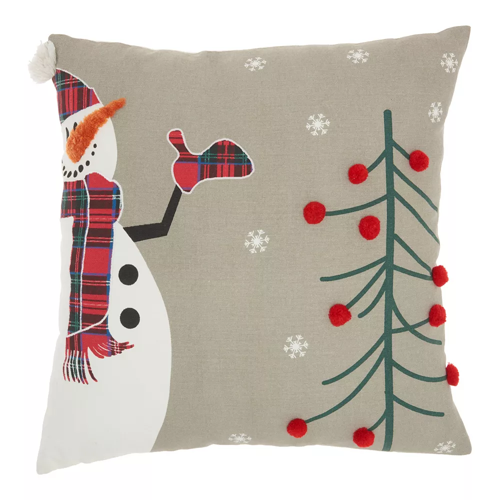 Share a seasonal sentiment with this Mina Victory Snowman with Tree throw pillow.