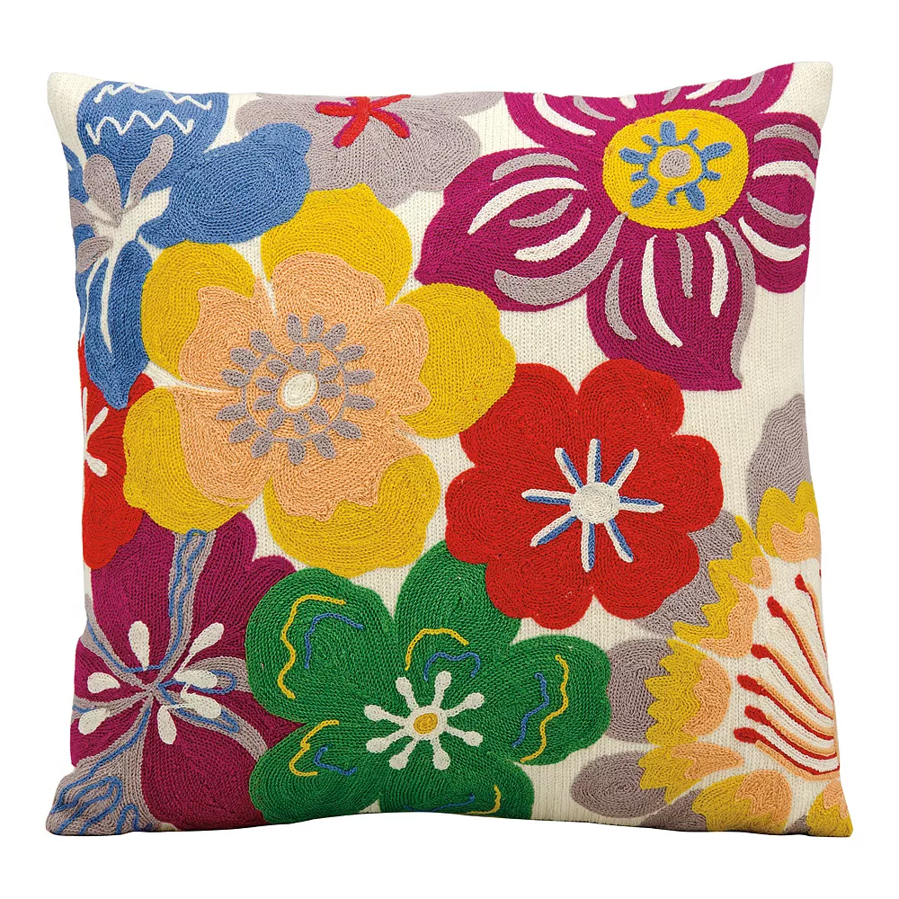 Add some vibrant floral patterns to your couch or bed with this Mina Victory Wild Flowers Multicolored 18”x18” Throw Pillow!