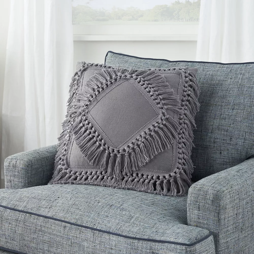 Lend a fresh new look and feel to your home with this Nicole Curtis Diamond Fringe Indoor Throw Pillow.