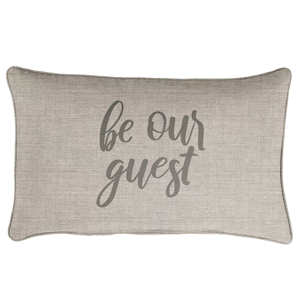 - Rectangular soft and cuddly pillow with “be our guest” inscription