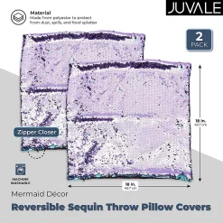 Juvale Reversible Sequin Throw Pillow Covers, Mermaid Décor (18 X 18 In, 2 Pack)