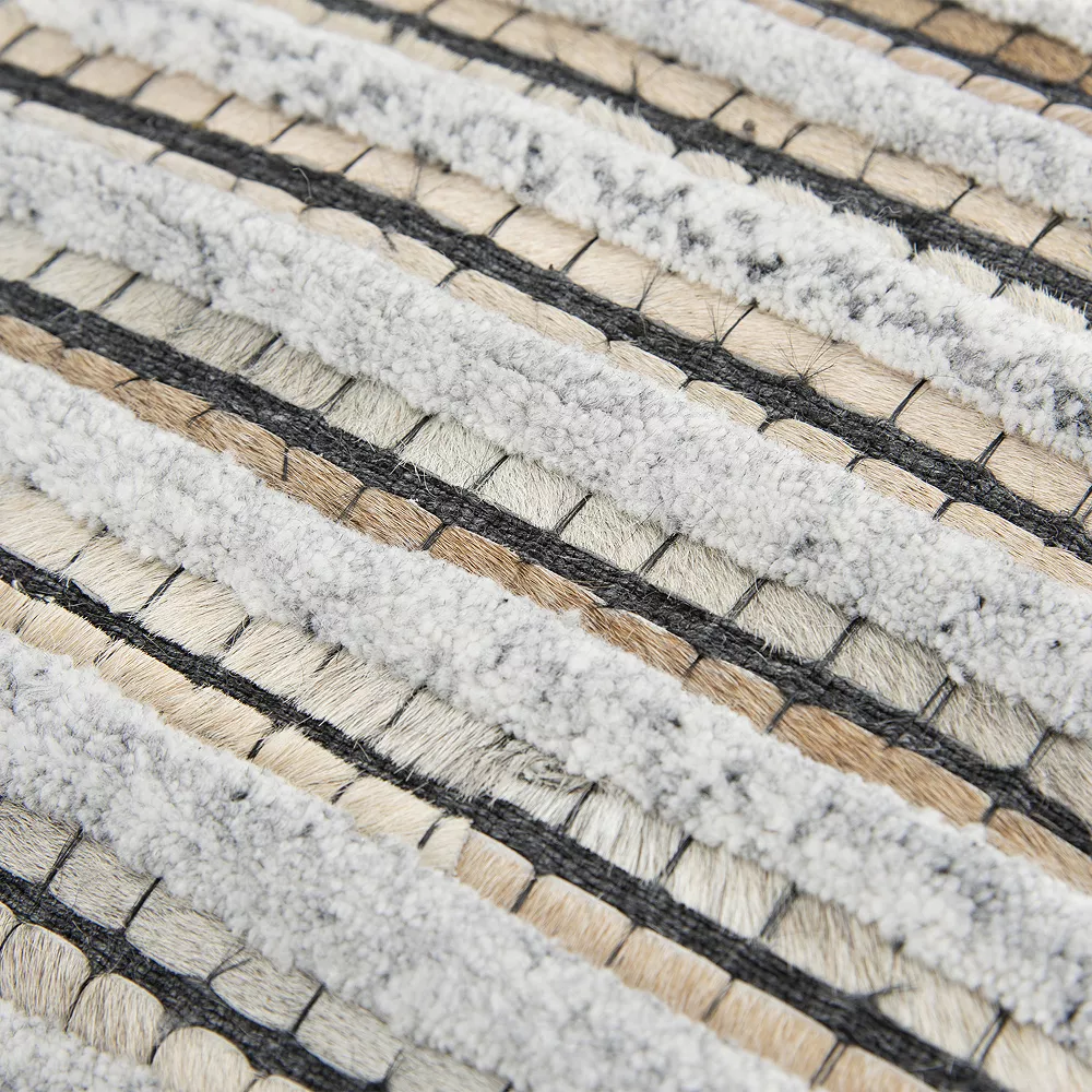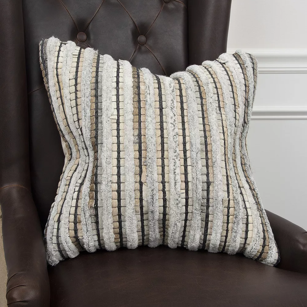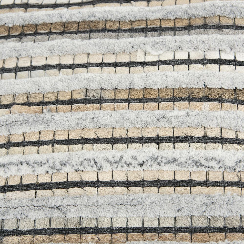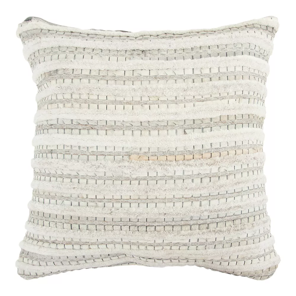 This handcrafted artisanal Rizzy Home Donny O Home Throw Pillow combines elements of fabric and hair-on-hide leather for a modern sophisticated look.