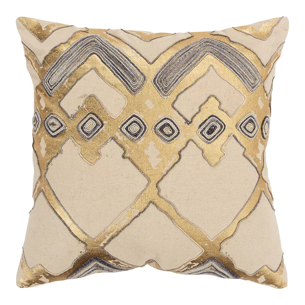 This beautiful Rizzy Home Gigi Gold Tan throw pillow comes with a polyester fill and a zipper closure!