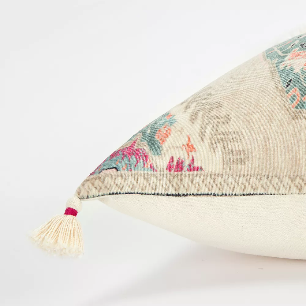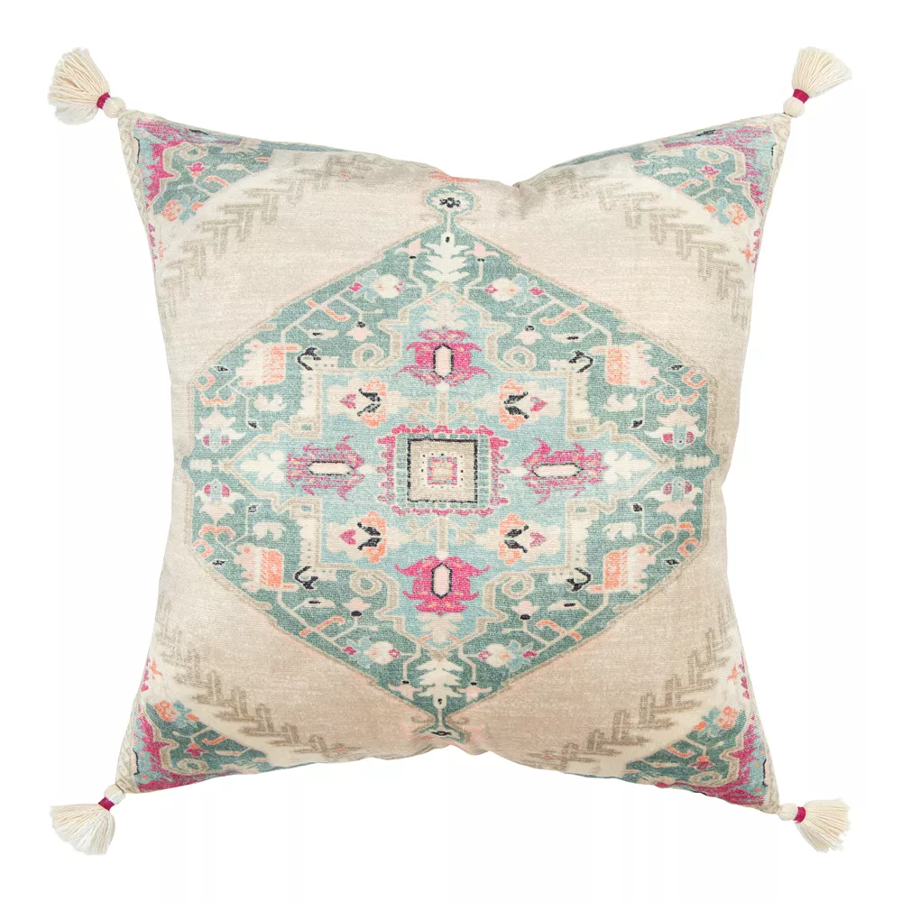 This cotton viscose medallion patterned printed pillow takes the best of color pop and softness and composes a pillow that is impeccably styled and so amazingly functionally comfortable and livable.