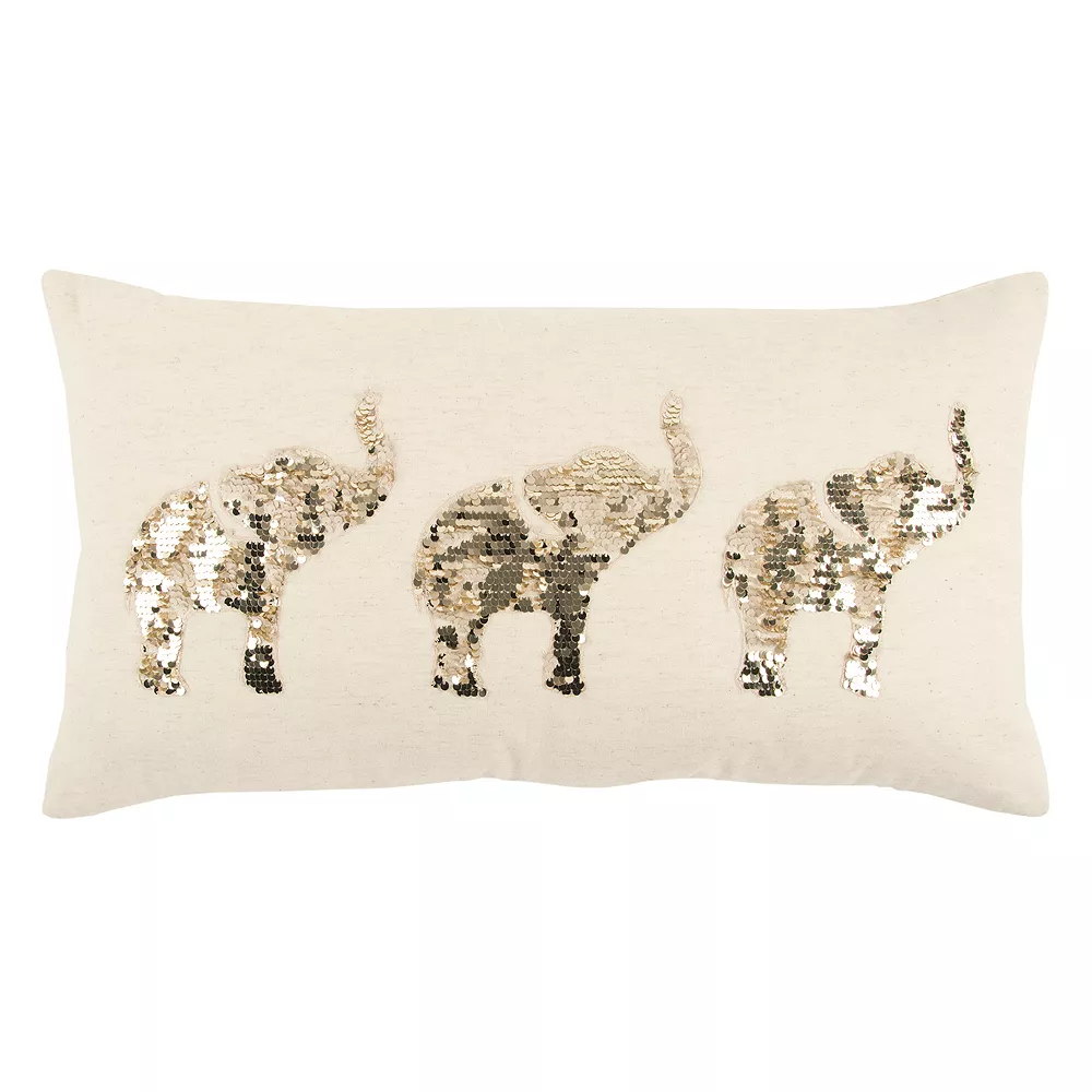 Take a walk on the wild side with this Rizzy Home Sequin Elephants oblong throw pillow. In white.