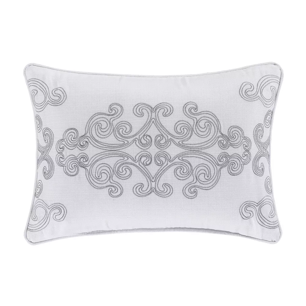 The Royal Court Claremont White Boudoir Decorative Throw Pillow is made using a textured Ivory fabric with a unique stylized embroidery pattern running across the face. This beautiful pillow matches back perfectly to the Claremont Bedding Collection or any room in the home.