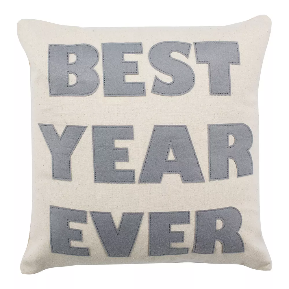 An empowering message reaches out from room decor with the Safavieh Best Year Ever Pillow.