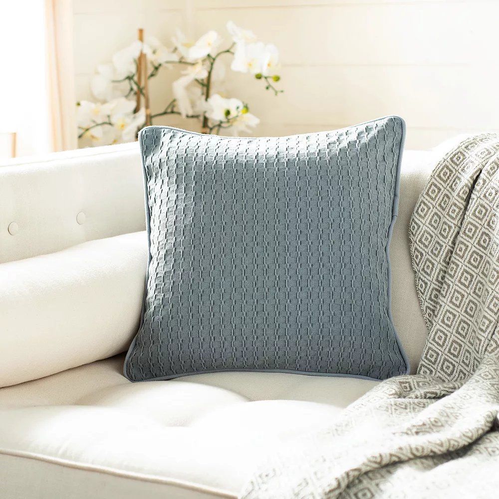 Rippling with must-touch texture in cool, stone blue tones, this Safavieh Giorgia Throw Pillow accents the sofa, loveseat or accent chair with a light, breezy look and luxurious feel.