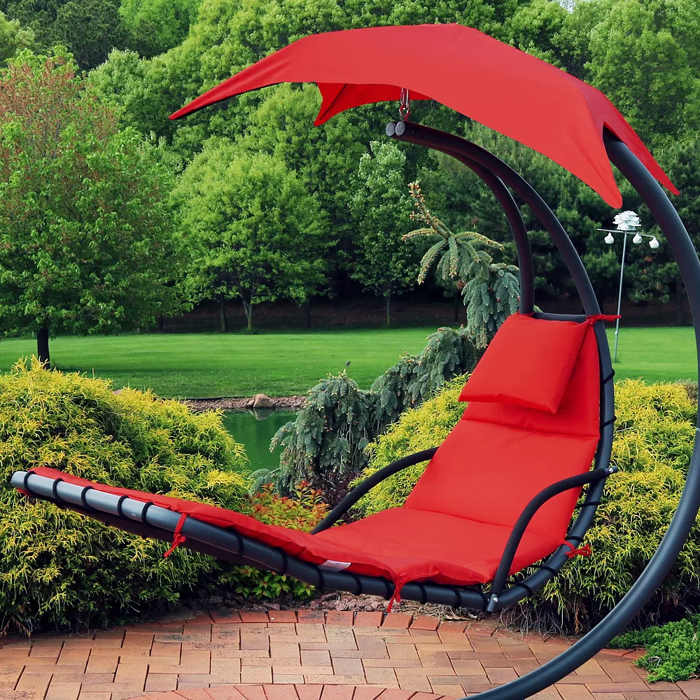 Give an old hanging lounge chair new life with this replacement cushion and umbrella cover set. This cushion and umbrella fabric are resilient to withstand the outdoor elements and are easy to clean and maintain. The cushion provides a comfortable place to lounge and relax on a hanging lounge chair frame. The umbrella cover is designed to be used with hanging lounge canopies that have a 4-spoke umbrella, as it has four places for the spokes to stay in place in each corner of the fabric. This set is ideal for replacing an old, worn cushion and umbrella, or simply switching up the colors for a change. Available in many colors, there are options to give your outdoor patio a nice, bright pop of color, bring a complementary color to your existing decor aesthetic, or simply replace an old but loved cushions set.