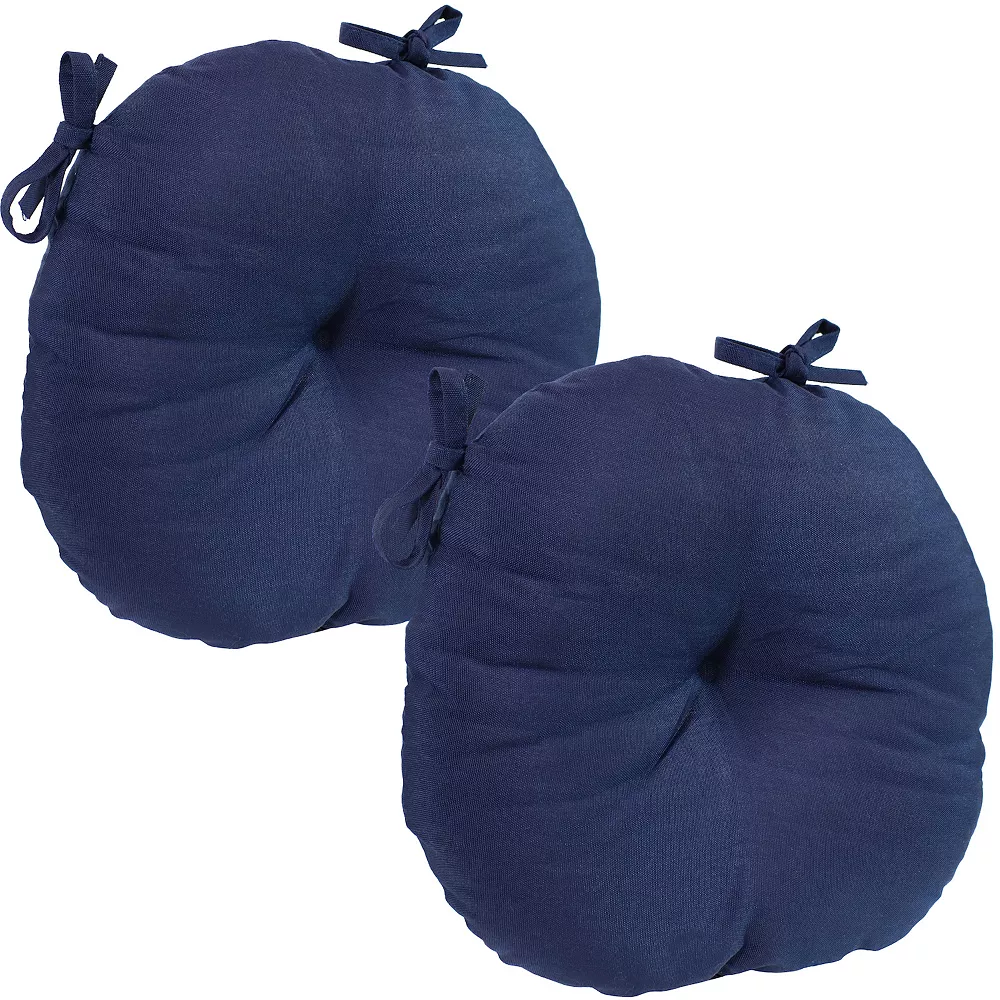 - PERFECT SIZE: These bistro seat cushions are the perfect size for patio bistro and dining chairs. Measures 15-inch diameter x 4 inches thick; weighs 1.4 pounds per cushion; ties: 9 inches long (2 total).