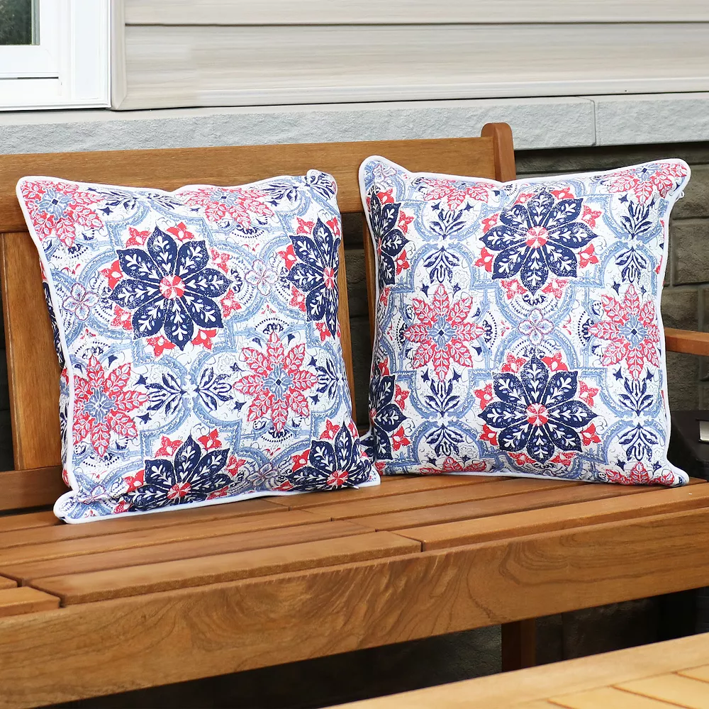 - DECORATIVE ACCENT: These indoor/outdoor throw cushions are perfect for adding a stylish touch to a variety of indoor and outdoor furniture. The square pillows can be placed on a hammock, outdoor bench, loveseat, breakfast nook and more for an eye-catching pop of color.
