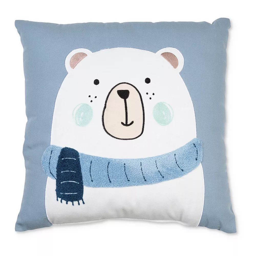 Add something festive to your home this winter. This polar bear with scarf toss pillow is a great way to spice up any room.