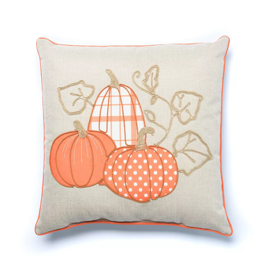 Create a fun and fresh seasonal look with this Tempo Home Three Pumpkins Toss Throw Pillow.