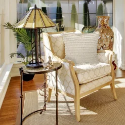 Edie At Home Edie @ Home Fine Line Embroidered Floral Indoor & Outdoor Throw Pillow