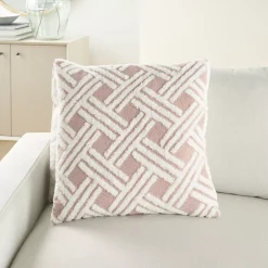 Mina Victory Faux Fur Jaquared Basketweave Indoor Throw Pillow