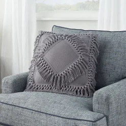 Nicole Curtis Diamond Fringe Indoor Throw Pillow