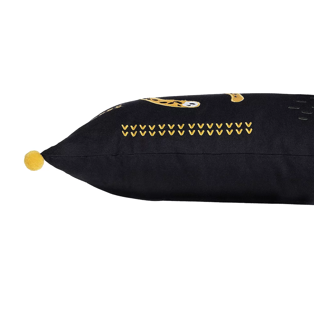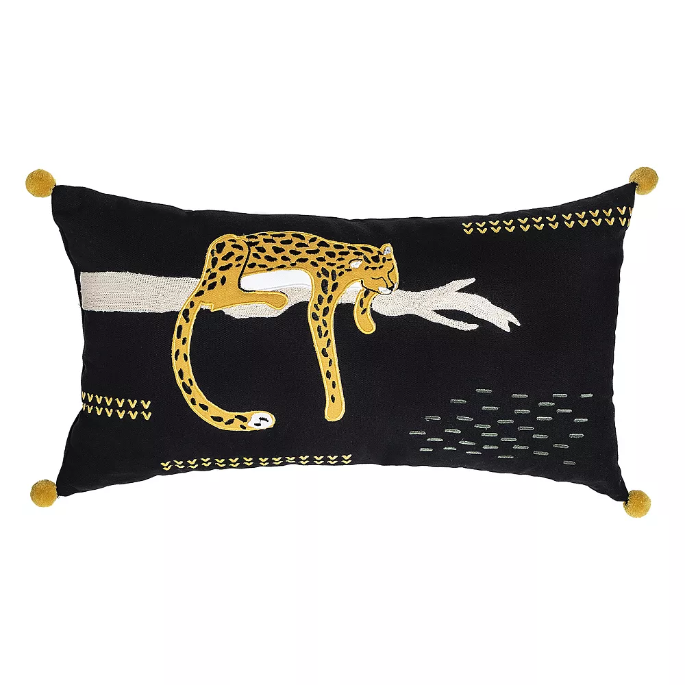 Create a fresh new look with this Leopard In Tree Embroidered with Pom Poms Throw Pillow.