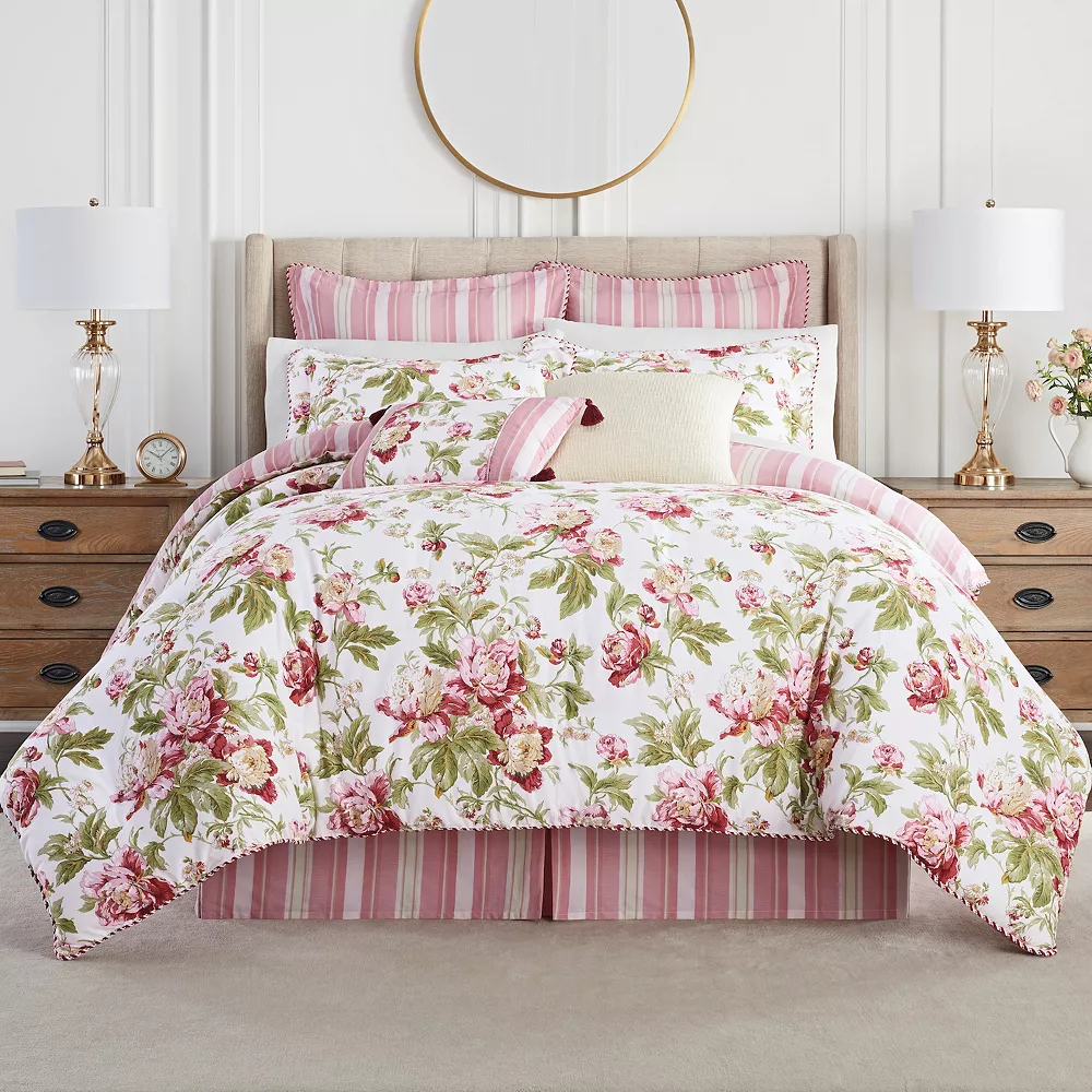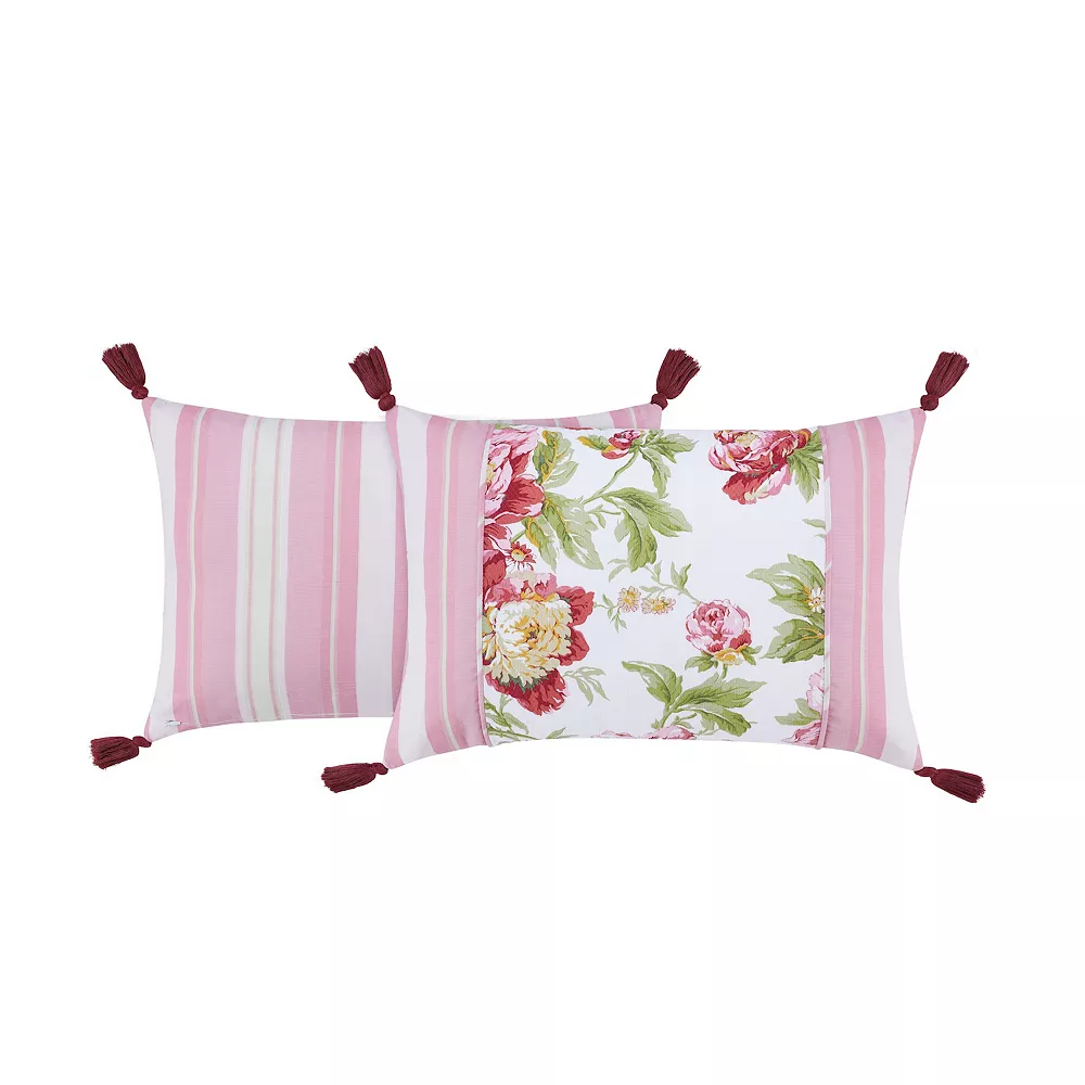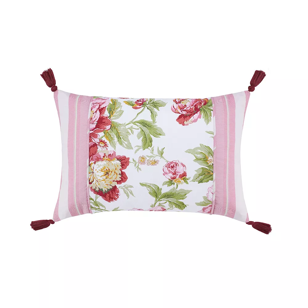 Easily elevate the look of your existing bedroom space with this stylish Waverly Forever Peony Pieced Throw Pillow.